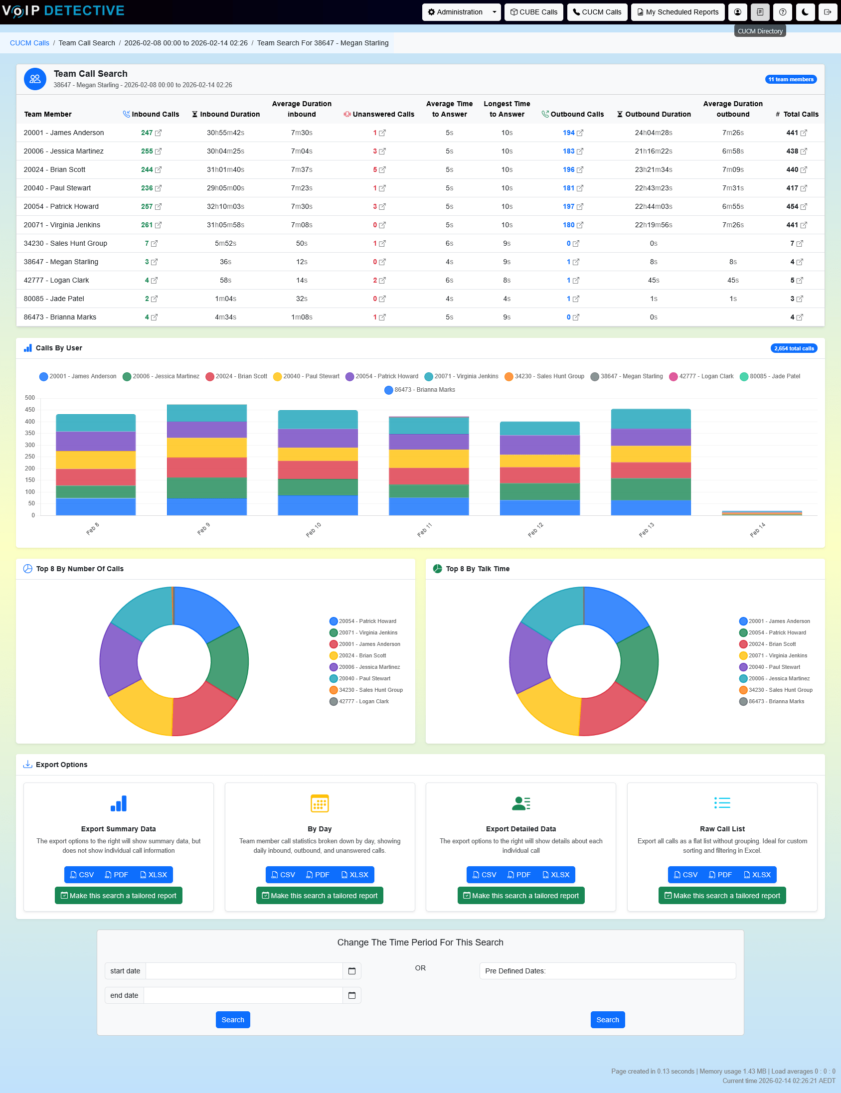 The Team report contains all extensions for your entire team.  See calls for individuals and groups quickly with a single report.